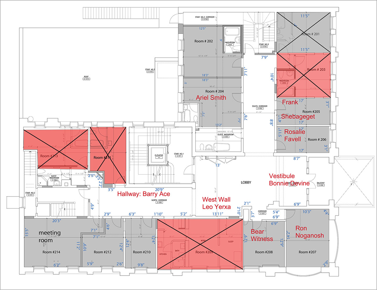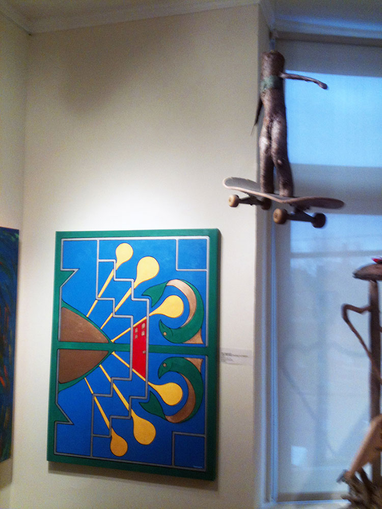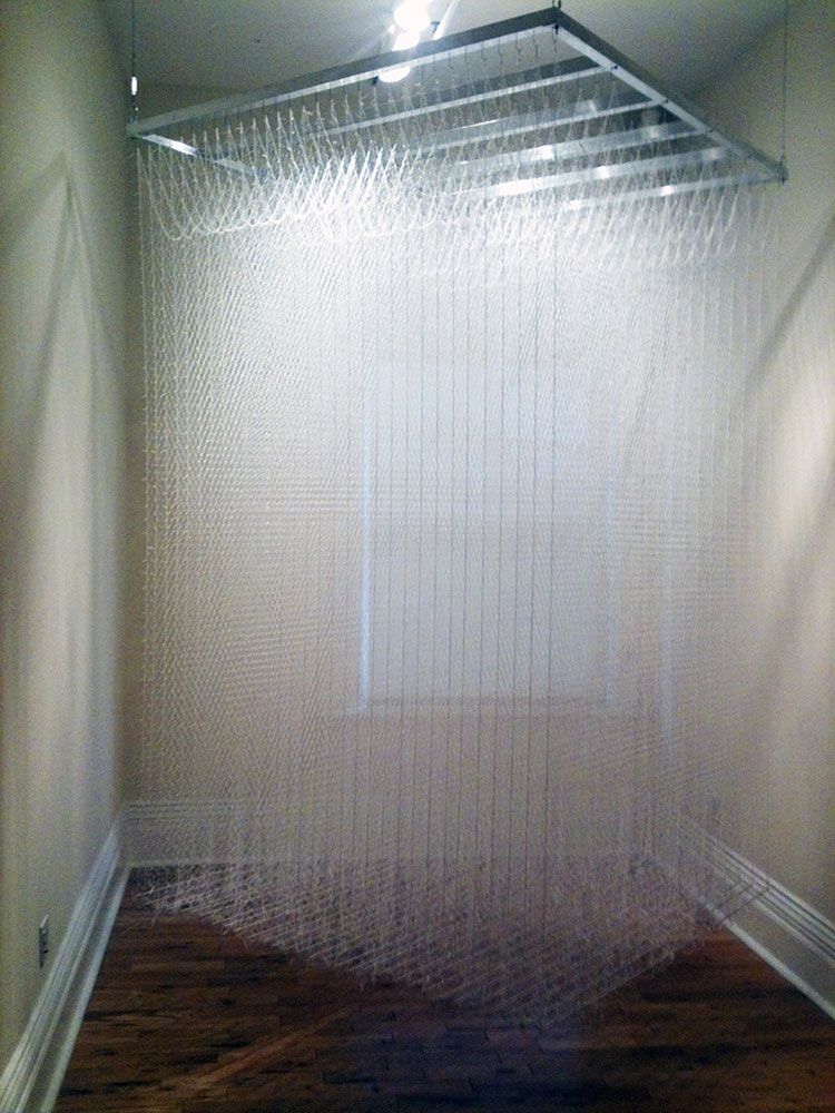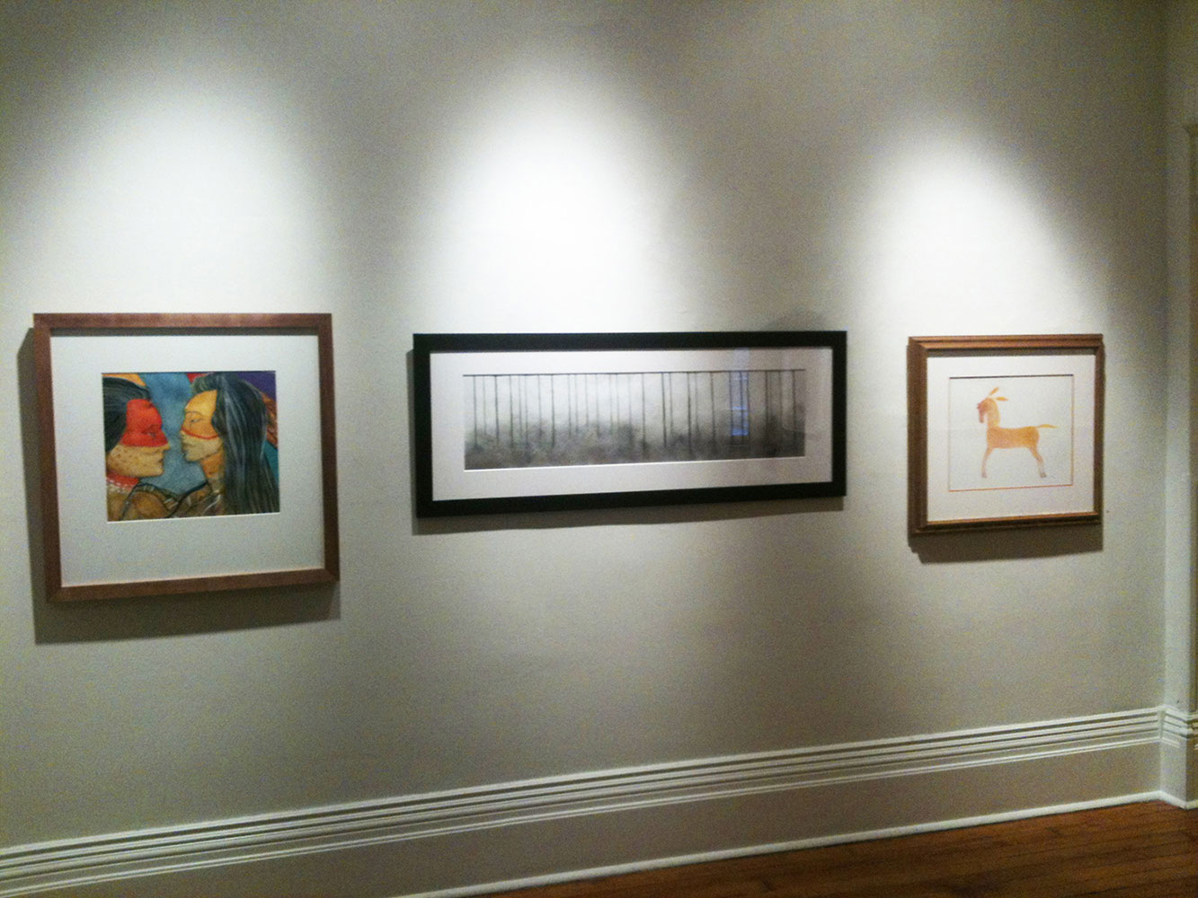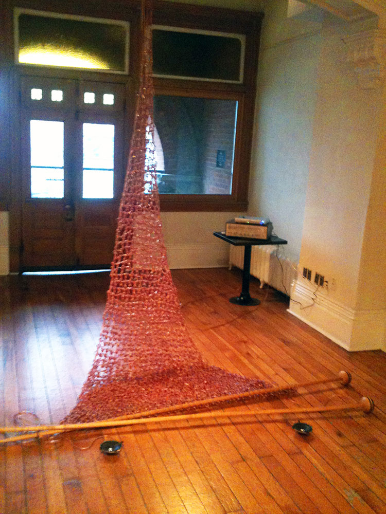 The second floor of the Gladstone Hotel was the designated exhibition space with the main foyer and wide hallway as exhibiting area, including vacant hotel rooms. Each artist selected their space from a schematic floor plan in advance of the exhibition, and came to Toronto and installed their work. The vernissage took place on November 22, 2012 and drew a steady crowd from Toronto’s Indigenous arts and academic communities.