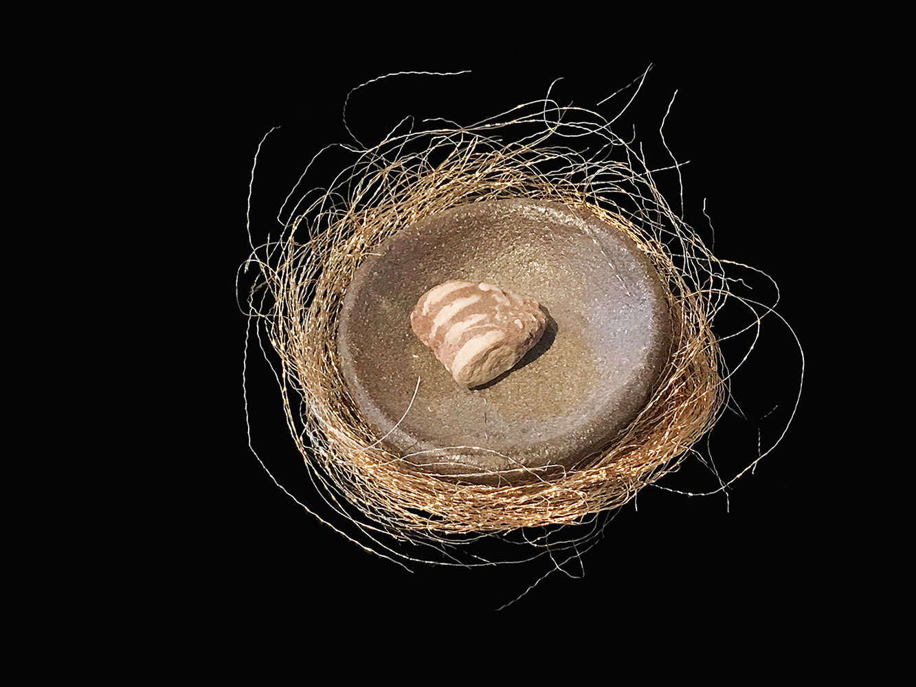 Nest (2018) 17 (l) x 9 (h) x 21 (d) cm, mixed media. Collection of the Artist. -