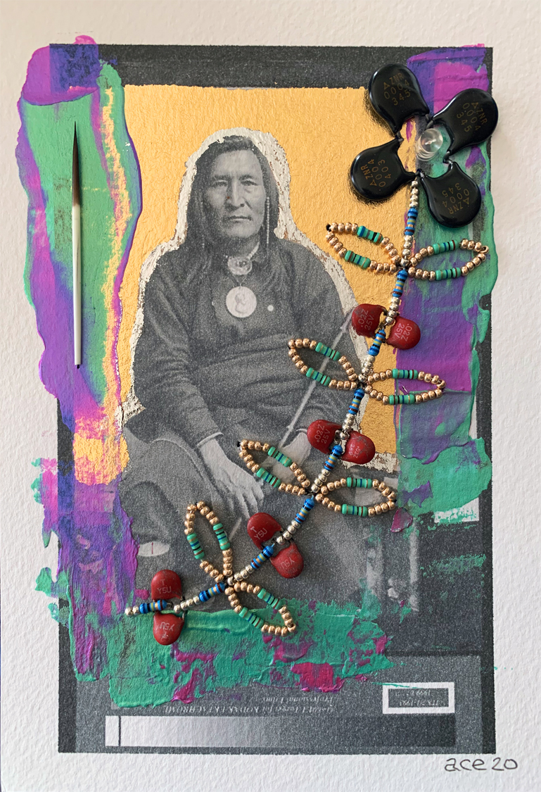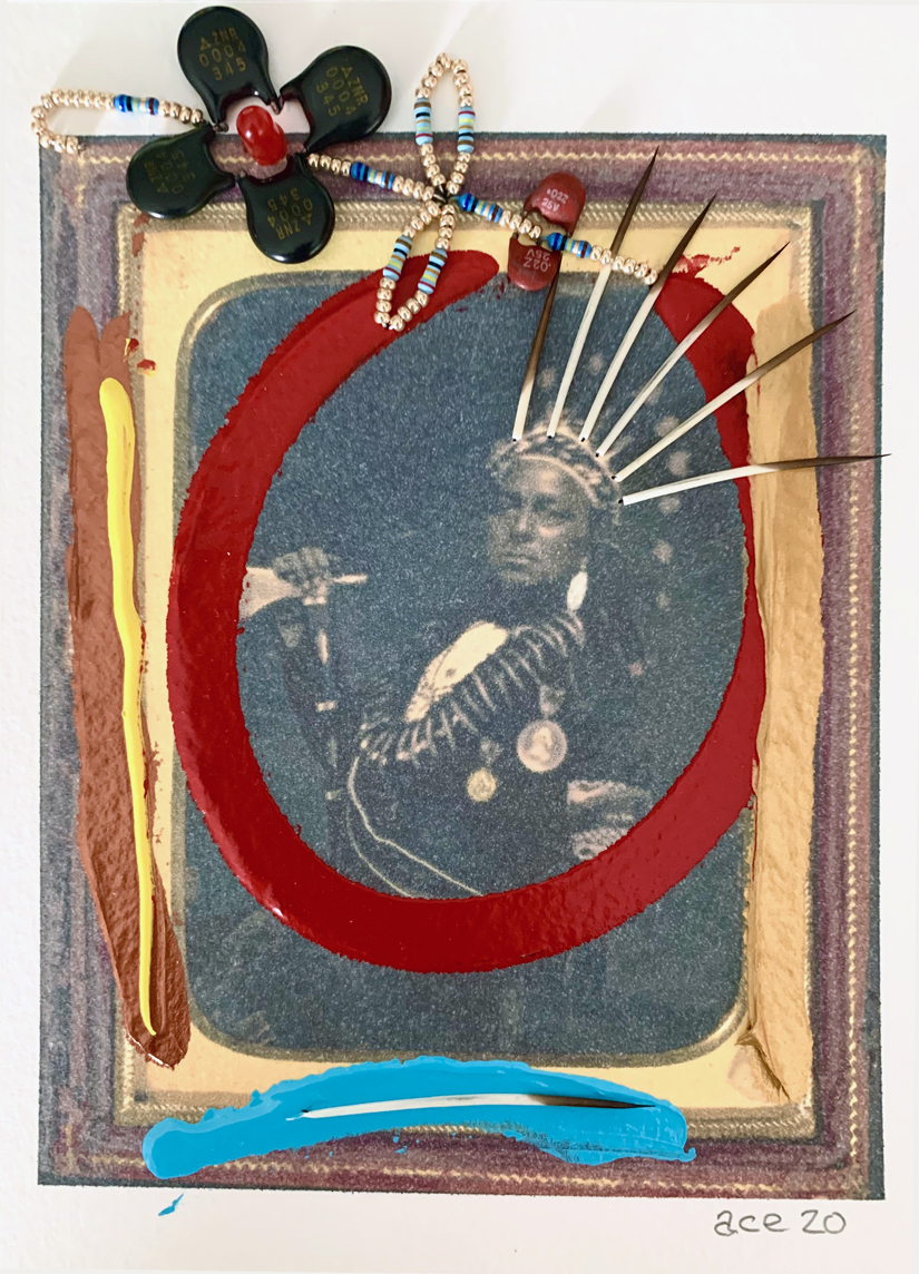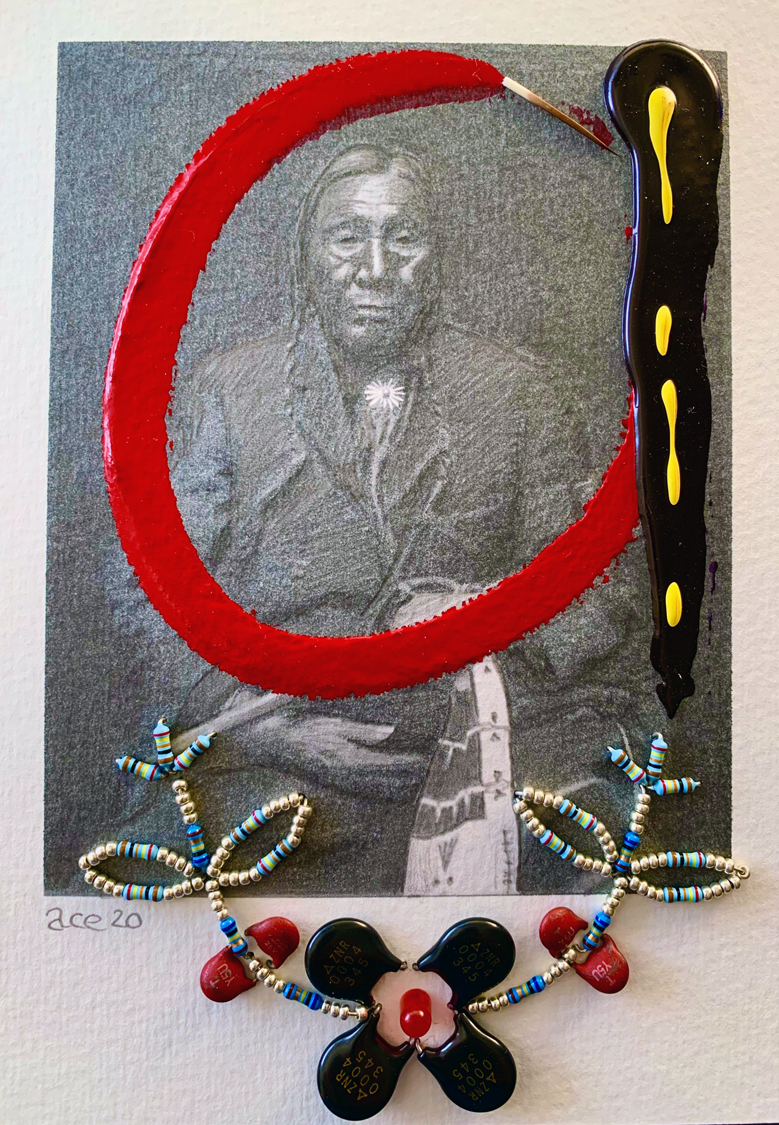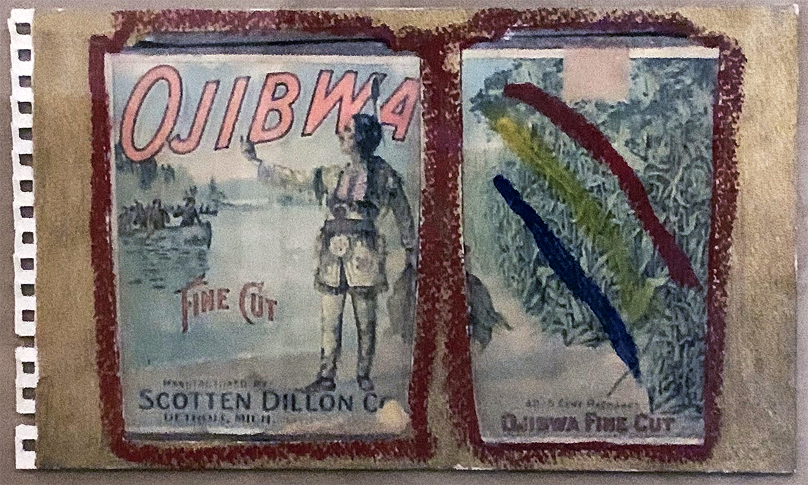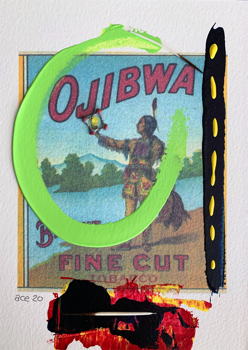 Ojibwa Bright Fine Cut (2020) mixed media on paper 18 x 13 cm. Private Collection (Ottawa). -