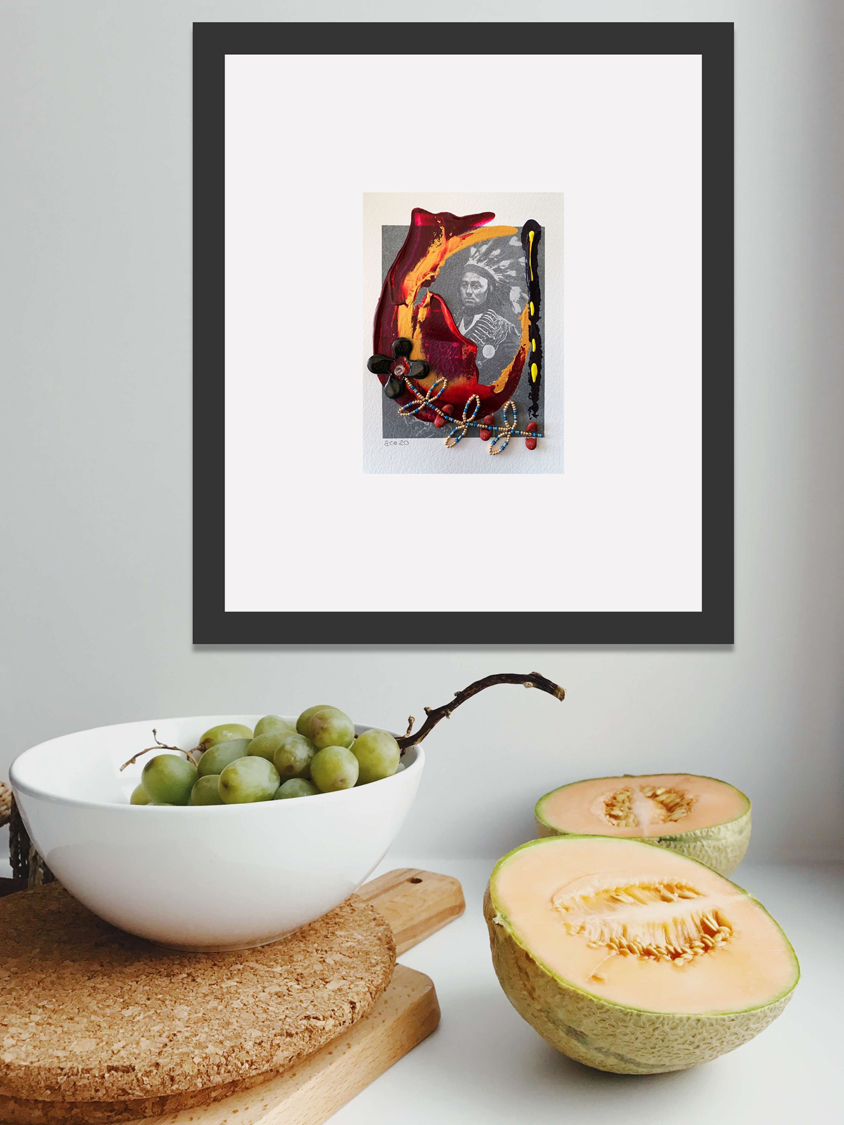 Big Chief - Canadian Apples (2023) mixed media on paper 18 x 13 cm. Private Collection (Ottawa). -