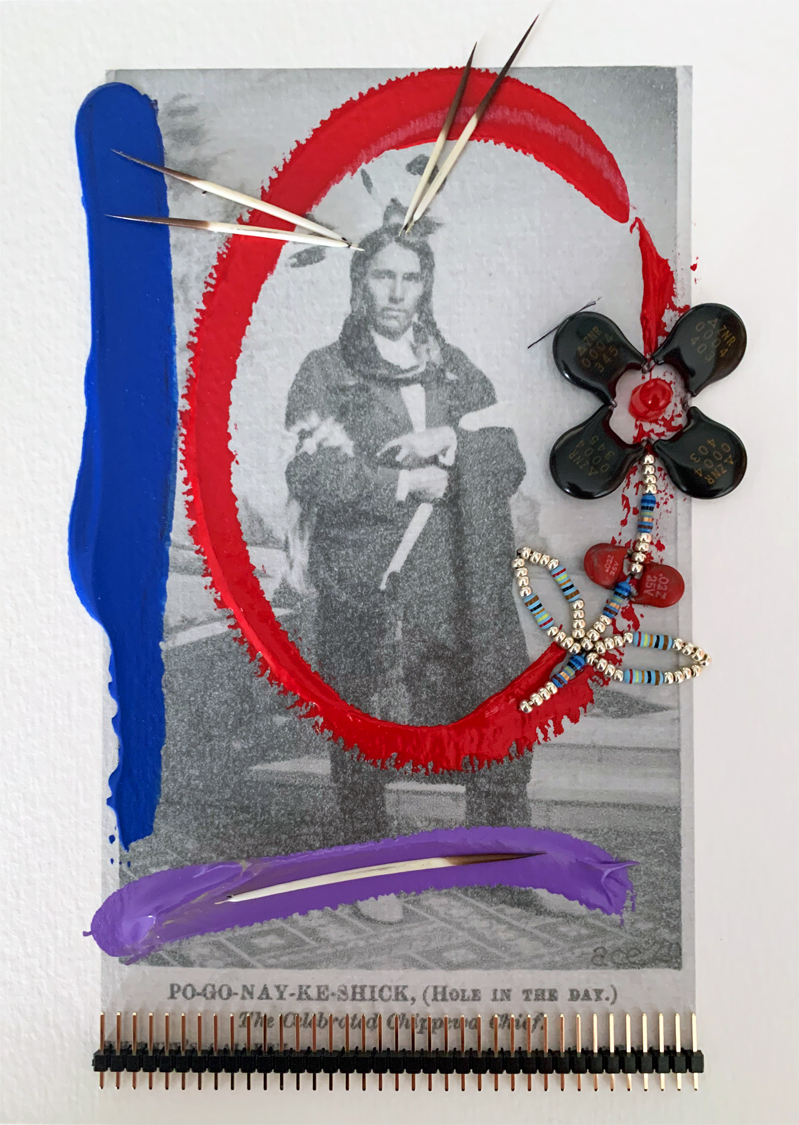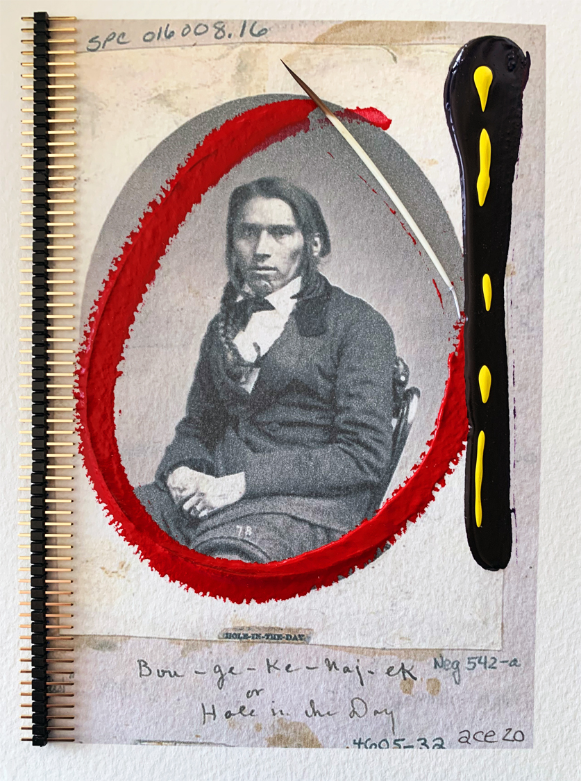 Bagonegiizhig (Hole in the Day) (2020) mixed media on paper 18 x 13 cm. Private Collection (Ottawa). -