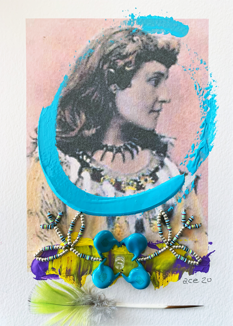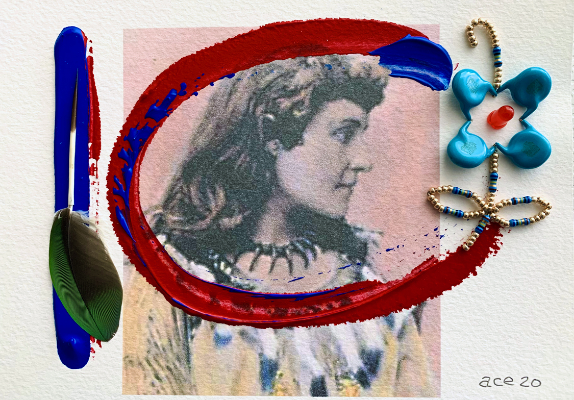 Tekahionwake (Pauline E. Johnson) (2020) mixed media on paper 18 x 13 cm. Private Collection (Ottawa). -