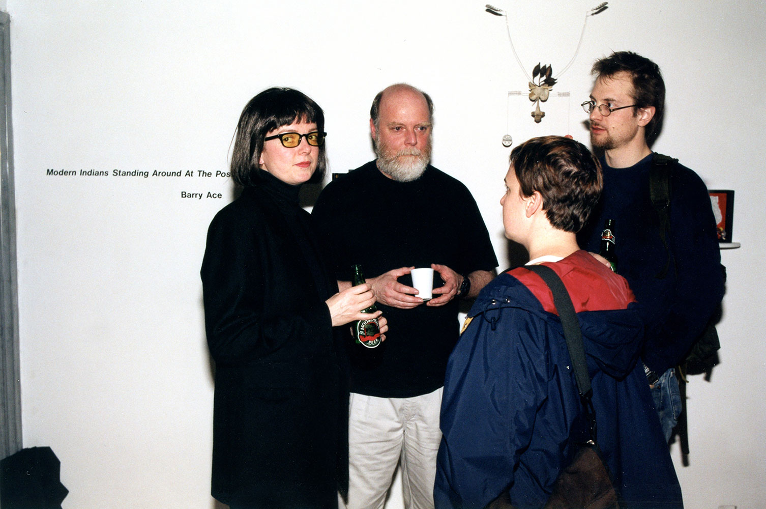 Modern Indians Standing Around at the Post (1998) was Ace’s first solo exhibition. The exhibition was held at Gallery 101 (view exhibition archive), an artist-run-centre in Ottawa at the former location on Nepean Street.