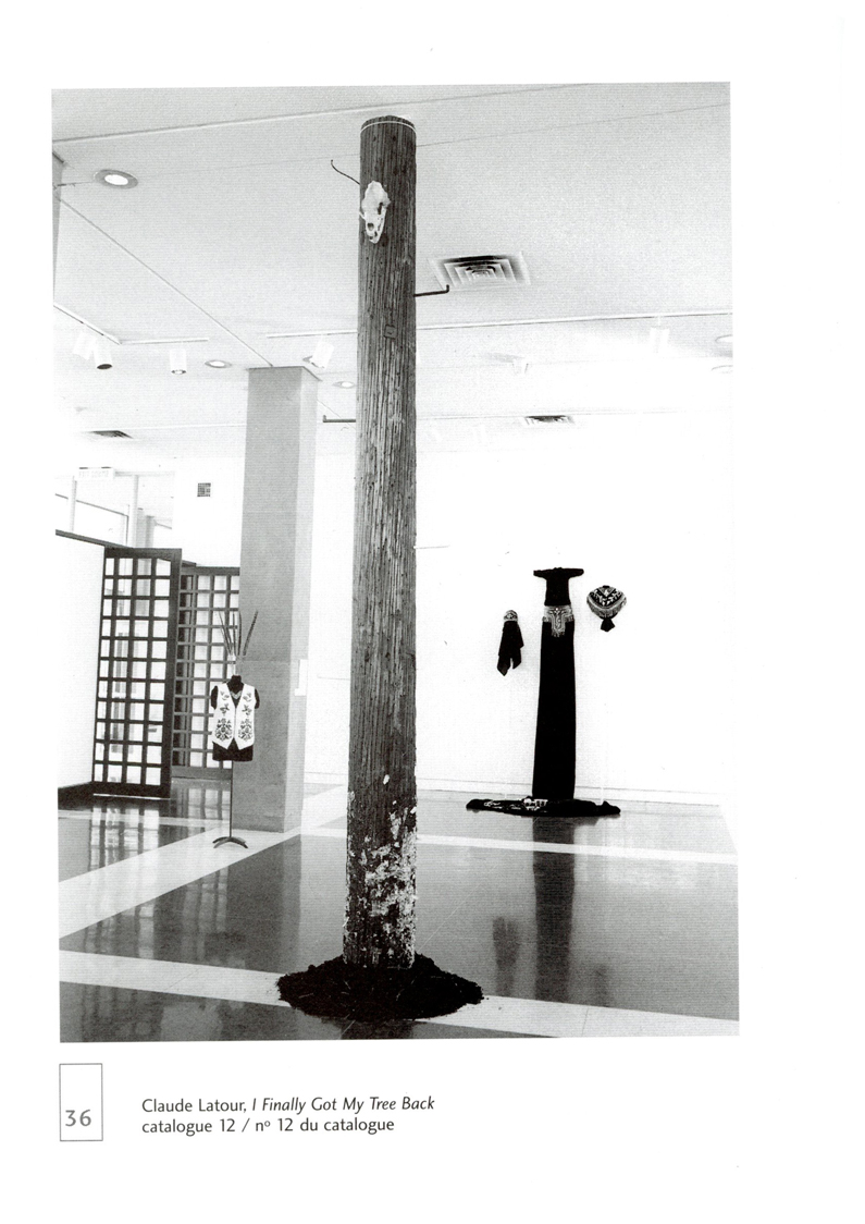 Urban Myths is motivated by this metaphor of visibility and invisibility. What we see in the metropolitan environment-buildings, monuments, parks, street names, neighbourhoods-reflects and reproduces societal values. Yet there is little in the Ottawa landscape that valorizes or affirms the existence of its Aboriginal inhabitants. In the realm of public art, there is only the Indian Scout statue in Major’s Hill Park, and several totem poles scattered throughout the city.