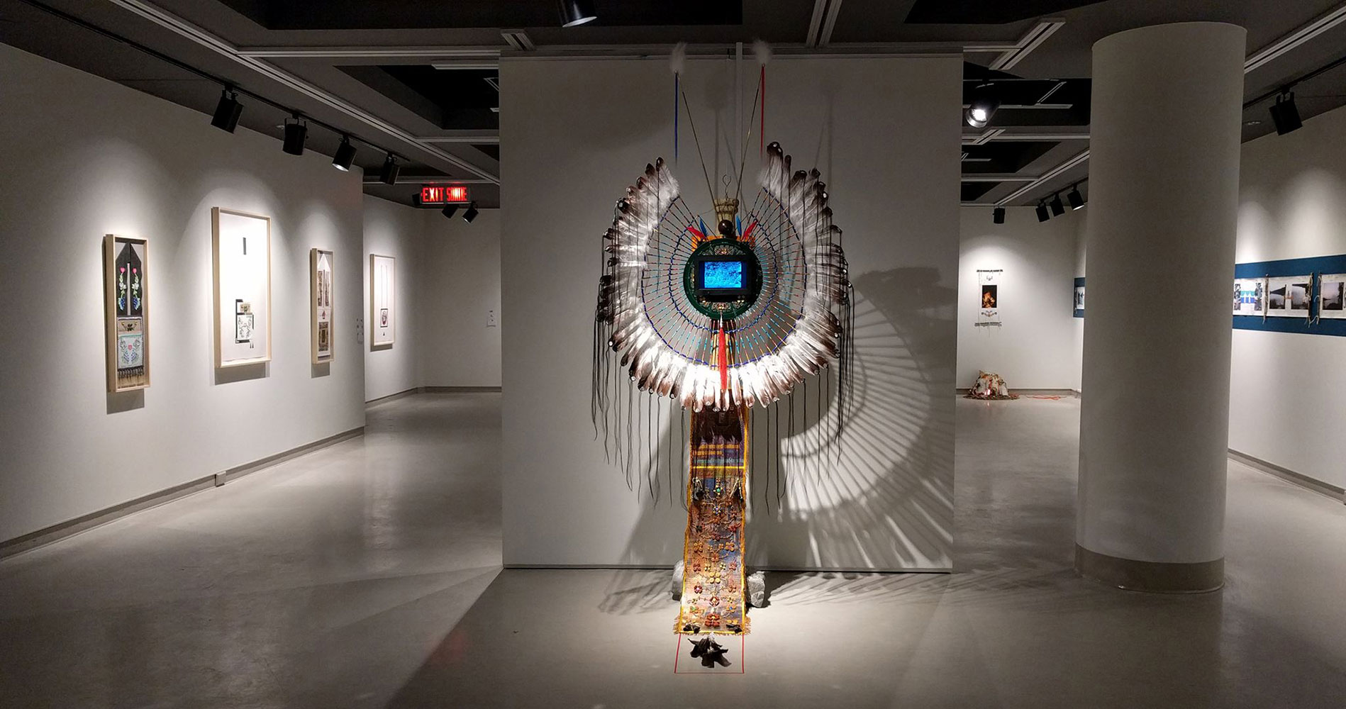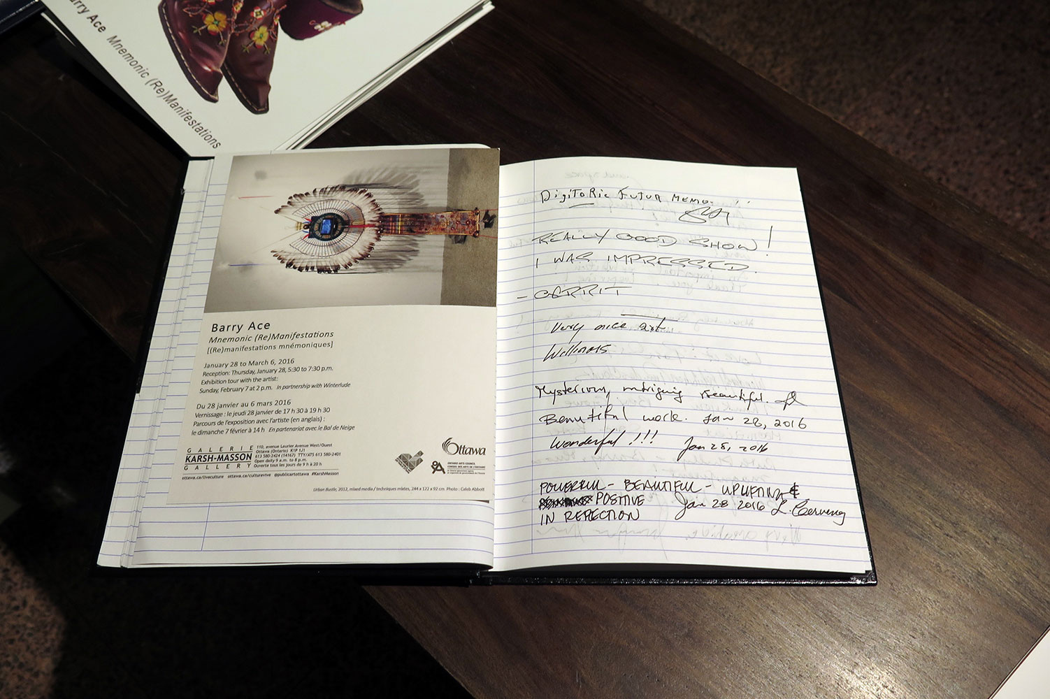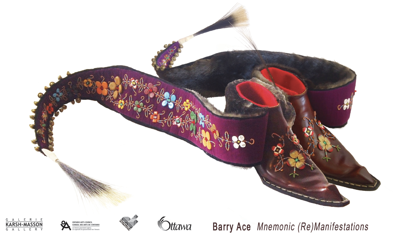 Traditions exist in a state of constant flux. They endure because they are repeated – passed on from one generation to the next – and yet with each unique repetition they also necessarily change and transform. In the Anishinaabeg worldview, transformation signifies power. We see this concept reflected in our stories of manitous and spirit beings who possess the ability to shapeshift and metamorphose. Much like these powerful entities, the Anishinaabeg have also maintained this profound capacity for change and adaption.[1] As memories recall and drum up traditions of the past, the ongoing rhythm of cultural continuity manifests memory newly in the present. In the solo exhibition Mnemonic (Re)Manifestations the latest works by artist Barry Ace illuminate the confluence and permeability of the historical and the contemporary, and further explore the continual stir of memory and tradition.
