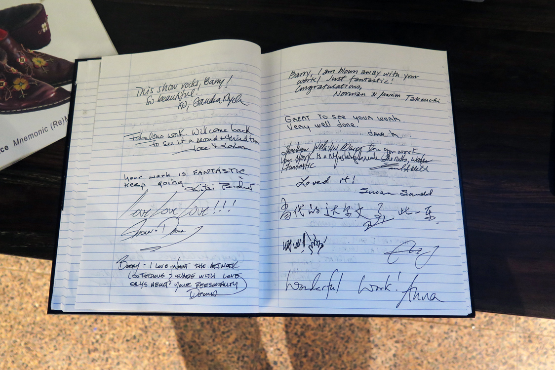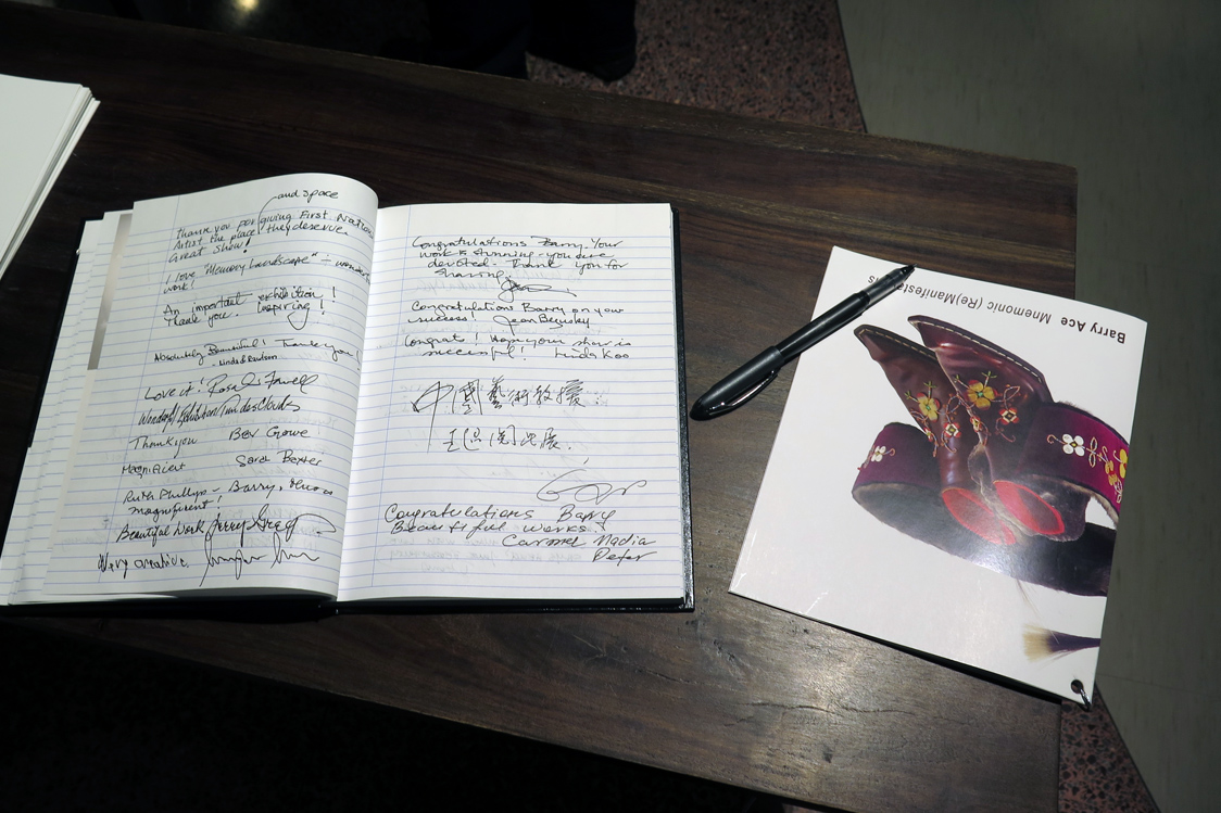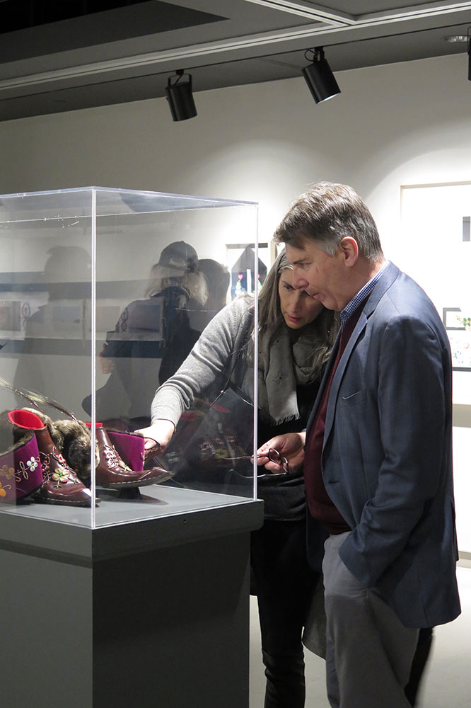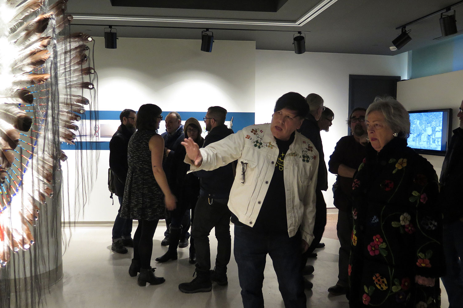 Mnemonic Manifestations opening. Artist Barry Ace with Gerda Hnatyshyn (Hnatyshyn Foundation).