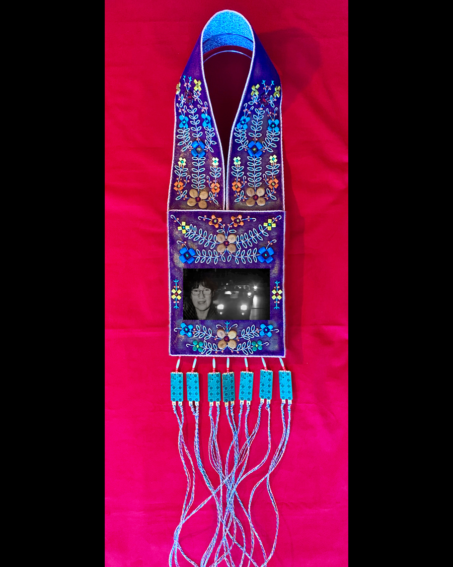 Ace’s Bandolier for Minnie Sutherland is an honouring work and a homage to the memory of Minnie Sutherland. Her tragic story should never be forgotten. Minnie Sutherland was a 40-year old Cree woman from Kashechawan First Nation, and a victim of overt racism by the police, troubling stereotyping and medical neglect. She is one of too many in a long list of victims who have succumbed to either racism, homophobia, hate crimes, stereotyping, and abuse.  The work is integral to the history of the National Capital Region, and bookends in the same year the tragic homophobic slaying of Alain Brosseau in 1989. With the recent death of Joyce Echaquan who was racially taunted as she lay dying in her hospital bed in the Province of Québec on September 28, 2020, Bandolier to Minnie Sutherland draws attention to the fact that after 31 years, Canada has still not addressed racism and systemic racism in this country.