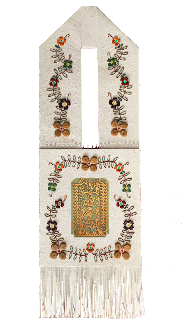Sign of the Mijibijiw (From beneath the surface) (2020) mixed media, 95 x 30.5 cm. Collection of Indigenous and Crown Relations (Gatineau).