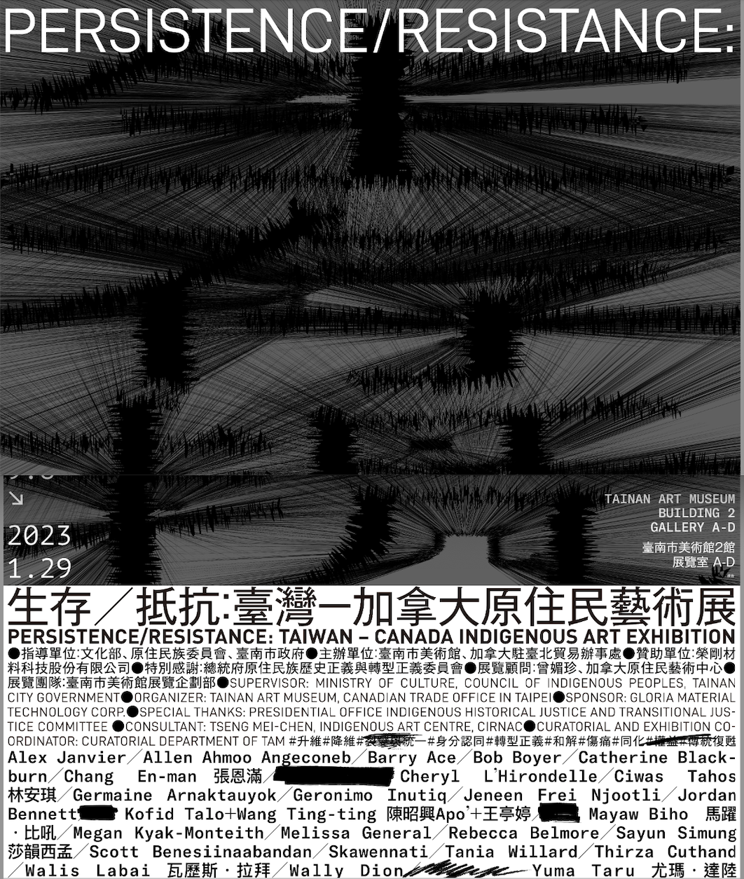 Persistence/Resistance: Taiwan - Canada Indigenous Art Exhibition. Tainan Art Museum, Tainan, Taiwan.