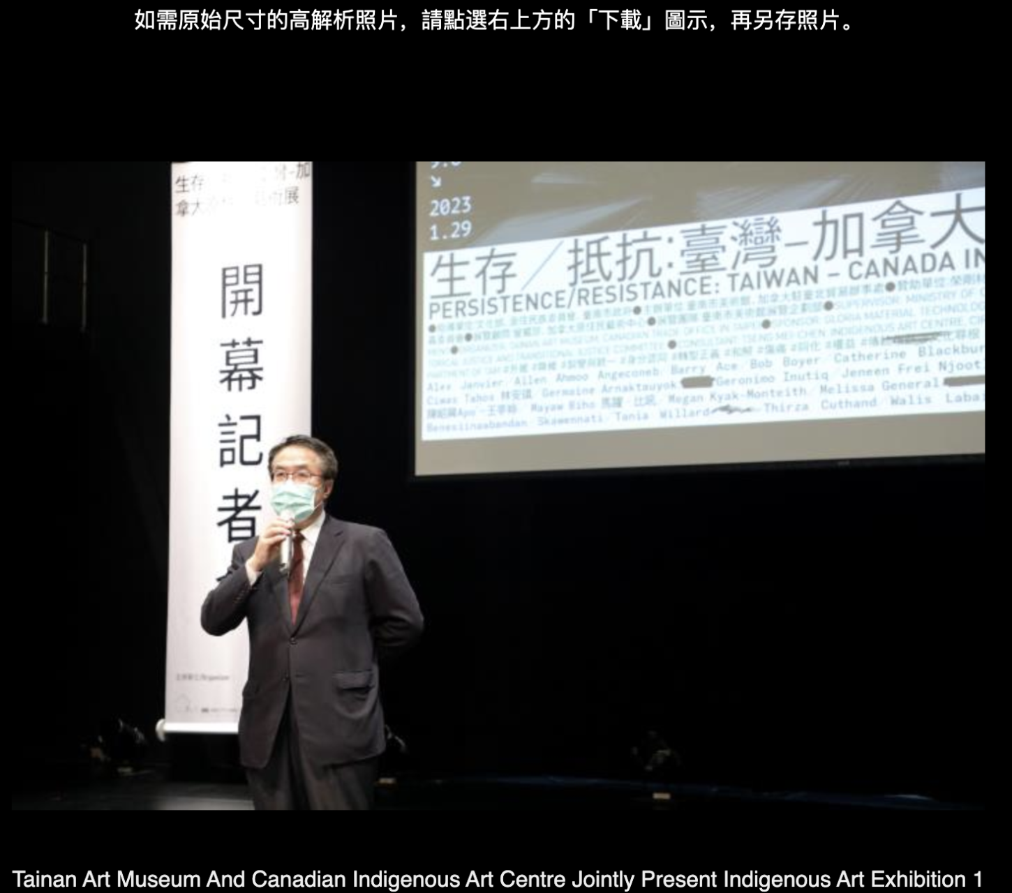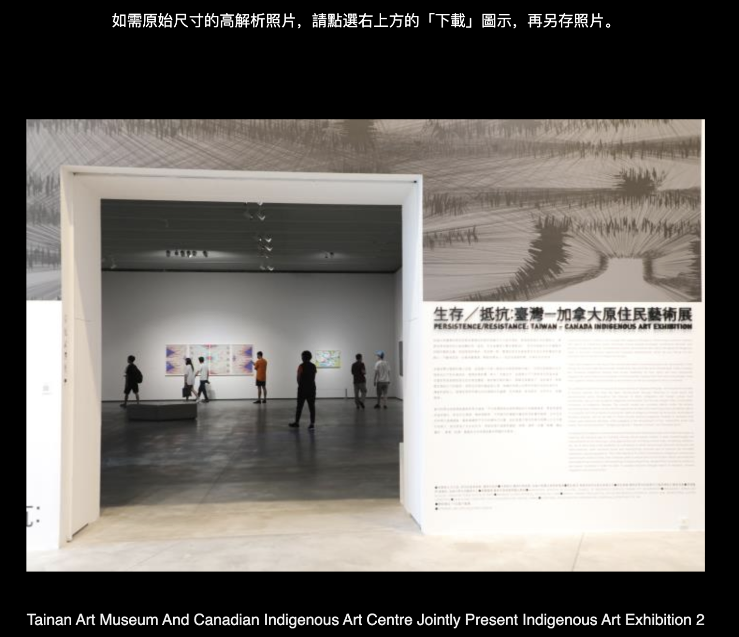 The first venue of the exhibition Persistence/Resistance: Taiwan – Canada Indigenous Art Exhibition, is set to run at the TAM, in the city of Tainan, in Southern Taiwan, from September 8, 2022, to January 30, 2023. It will feature artworks from Canada and from Taiwan. This exhibition will feature some of the best Canadian and Taiwanese contemporary Indigenous art and is the first ever initiative of this nature between Canada and Taiwan.