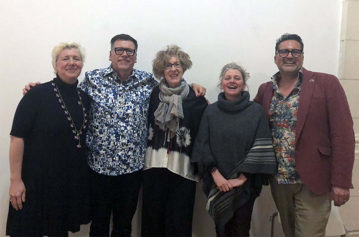 Georgiana Uhlyarik (AGO), Barry Ace (Artist), Lori Beavis (daphne), Catherine Sicot (Elegoa), Adrian Stimson (Artist) at the Centre Intermonde, La Rochelle, France. Photo: Georgiana Uhlyarik.
