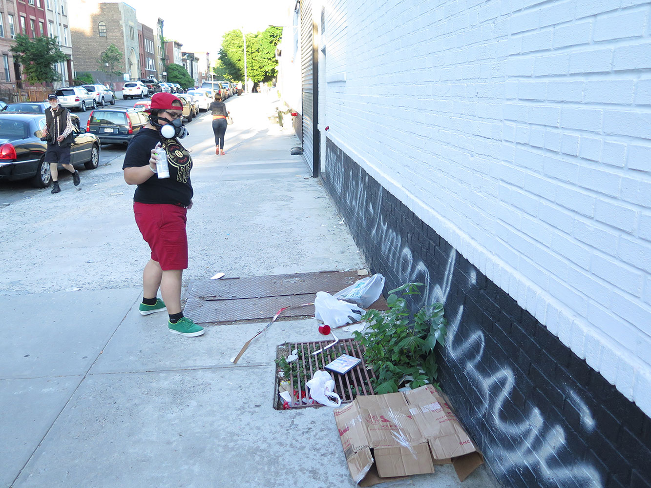 Barry Ace in front of FiveMyles gallery Brooklyn, New York