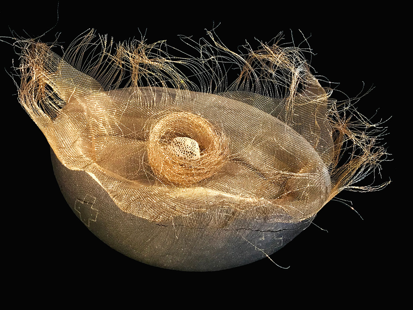 Nest (2018) 17 (l) x 9 (h) x 21 (d) cm, mixed media. Collection of the Artist. -