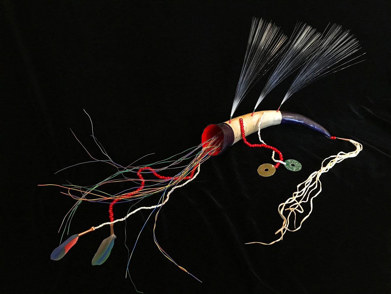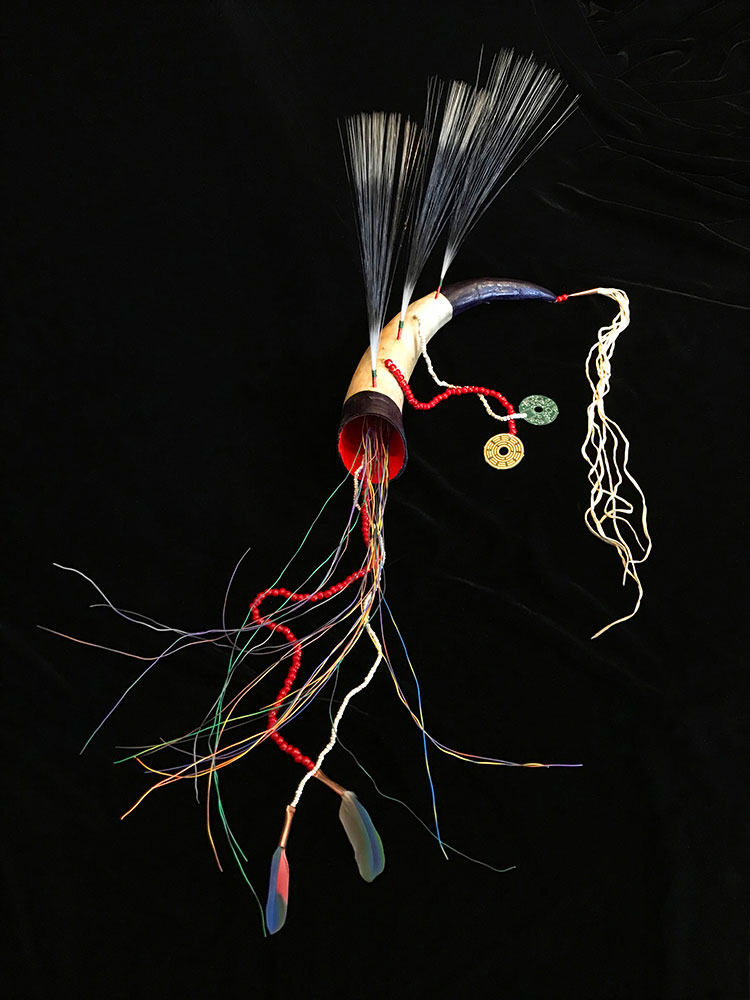 Spirit Vessel (2017) 115cm x 22cm, mixed media. Collection of the North American Native Museum (Zurich). -