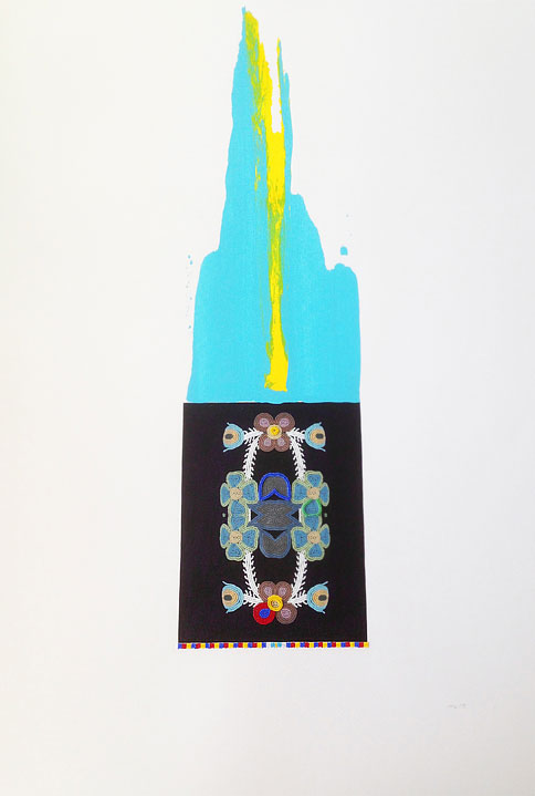 Mashkiki (Medicine) Bandolier Bag (2015) 91.5 x 30.5 cm, mixed media on Arches Platine paper. Private Collection (Victoria). -