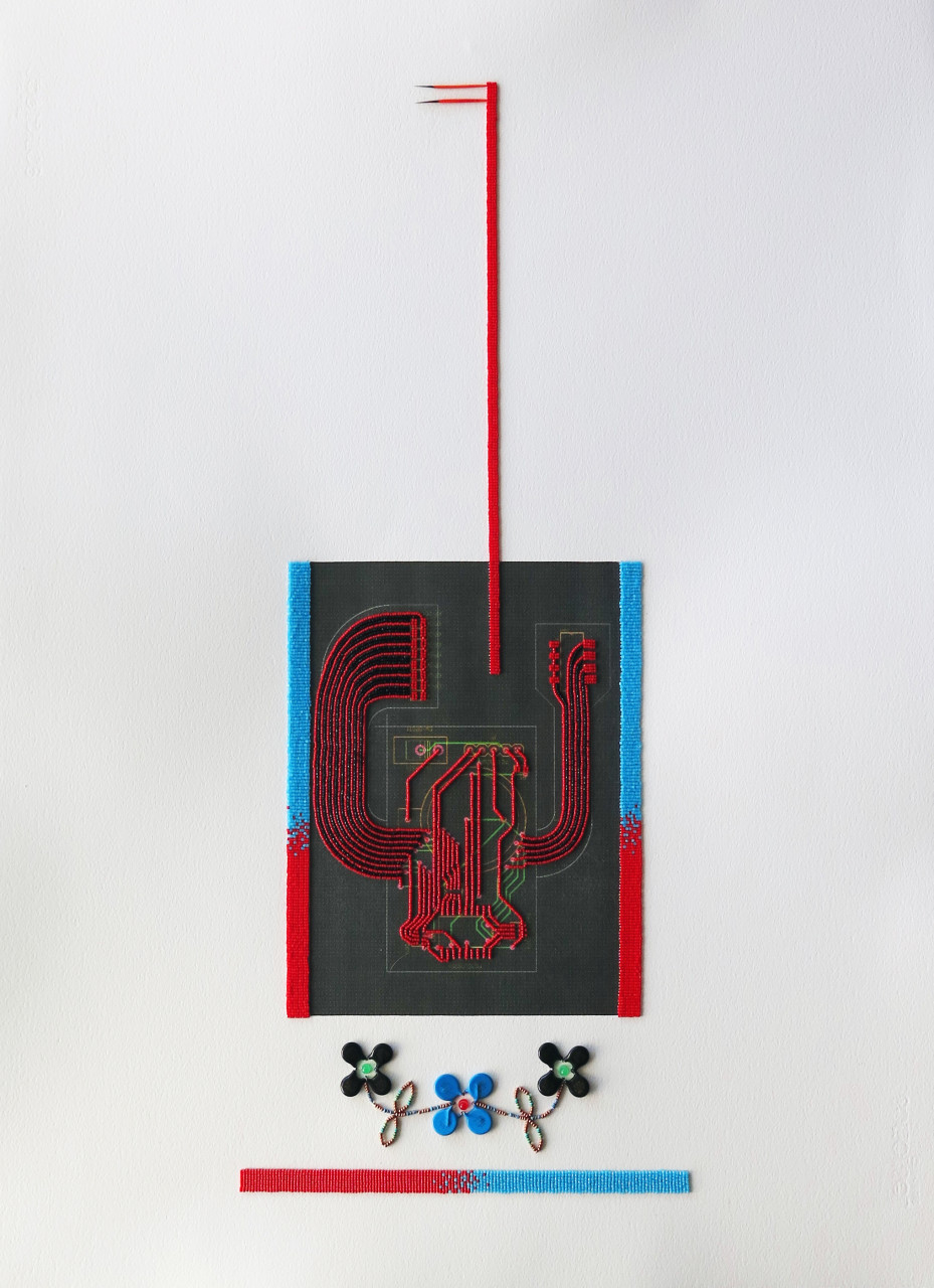 Beaded Abstraction (2014) 56cm x 76cm, mixed media. Collection of Indigenous and Crown Relations (Gatineau). -