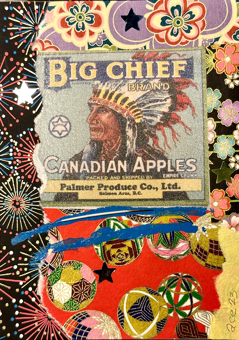 Big Chief - Canadian Apples (2023) mixed media on paper 18 x 13 cm. Private Collection (Ottawa). -