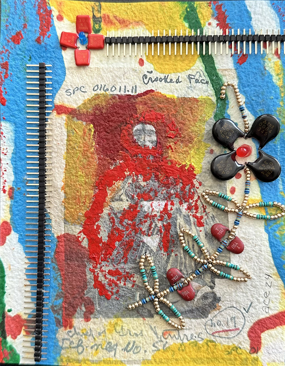 Crooked Face (2024) mixed media on paper 18 x 13 cm. Private Collection (Montreal). -