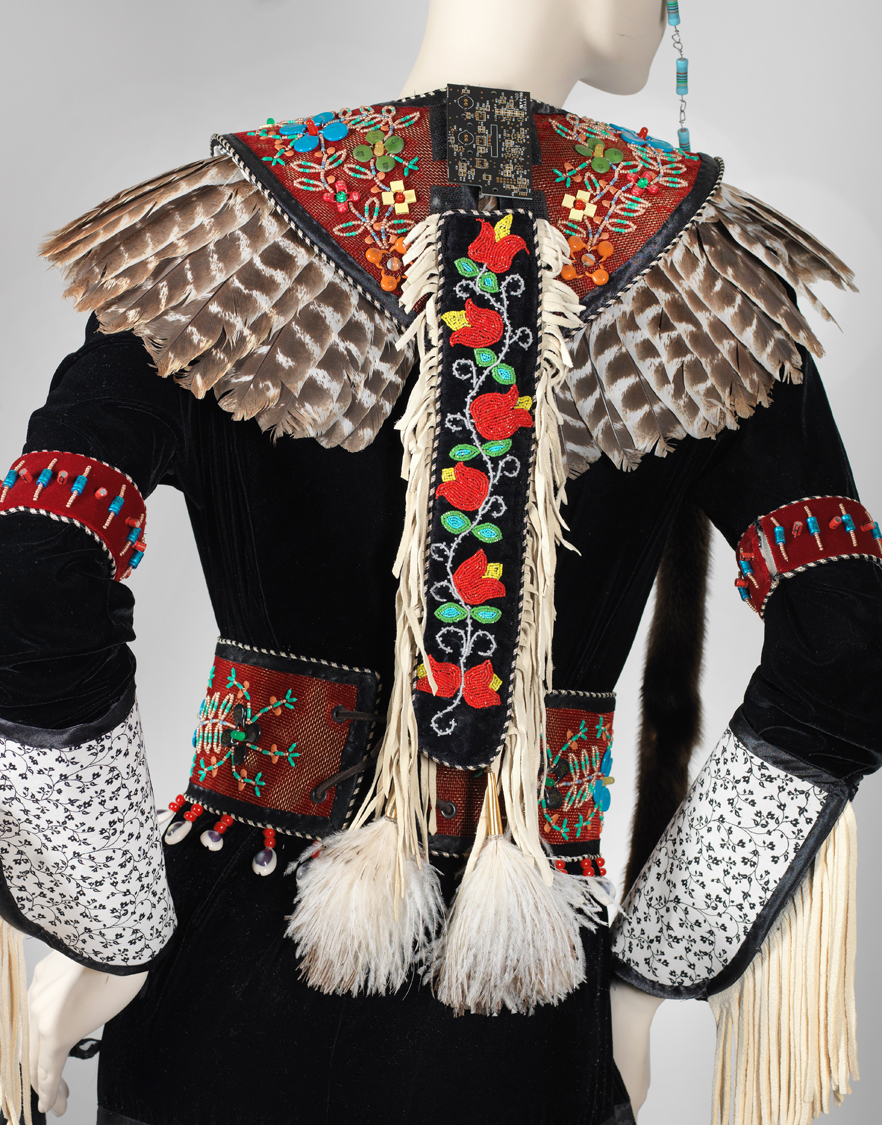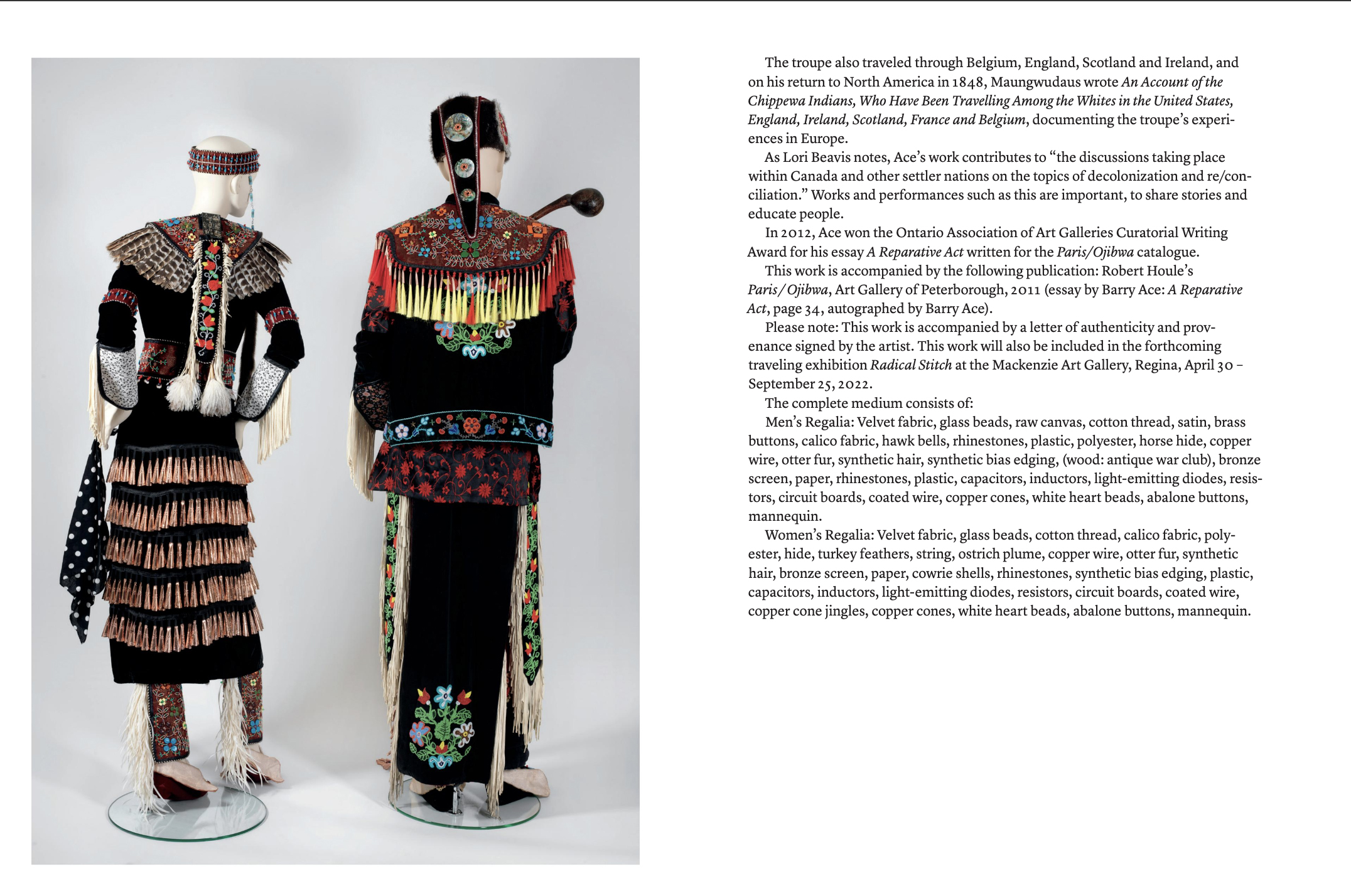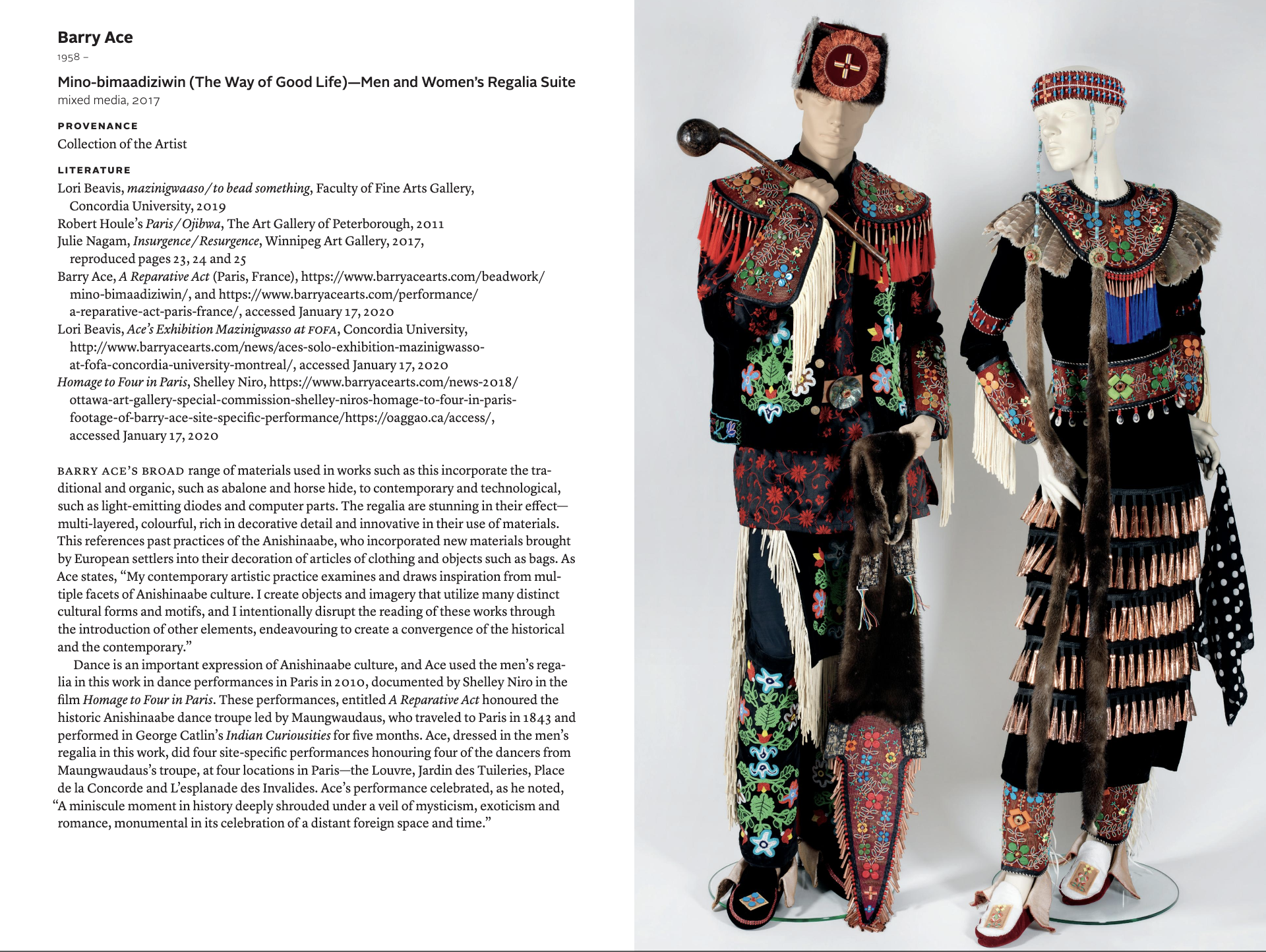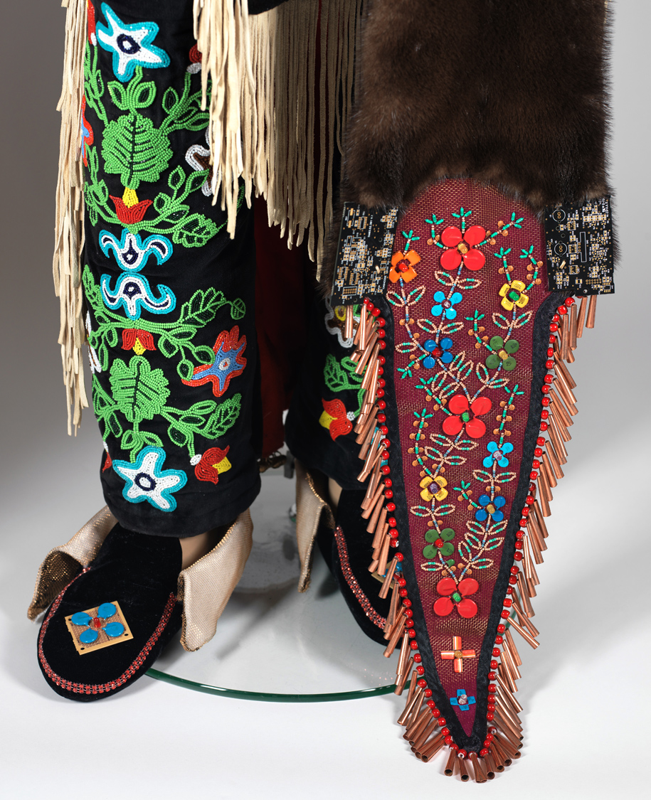 Mino bimaadiziwin (2017) Various sizes on mannequin. Mixed media (Men and women’s regalia suite). Collection of the Artist. -