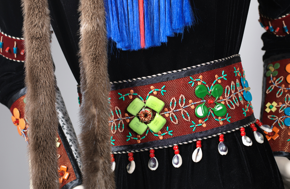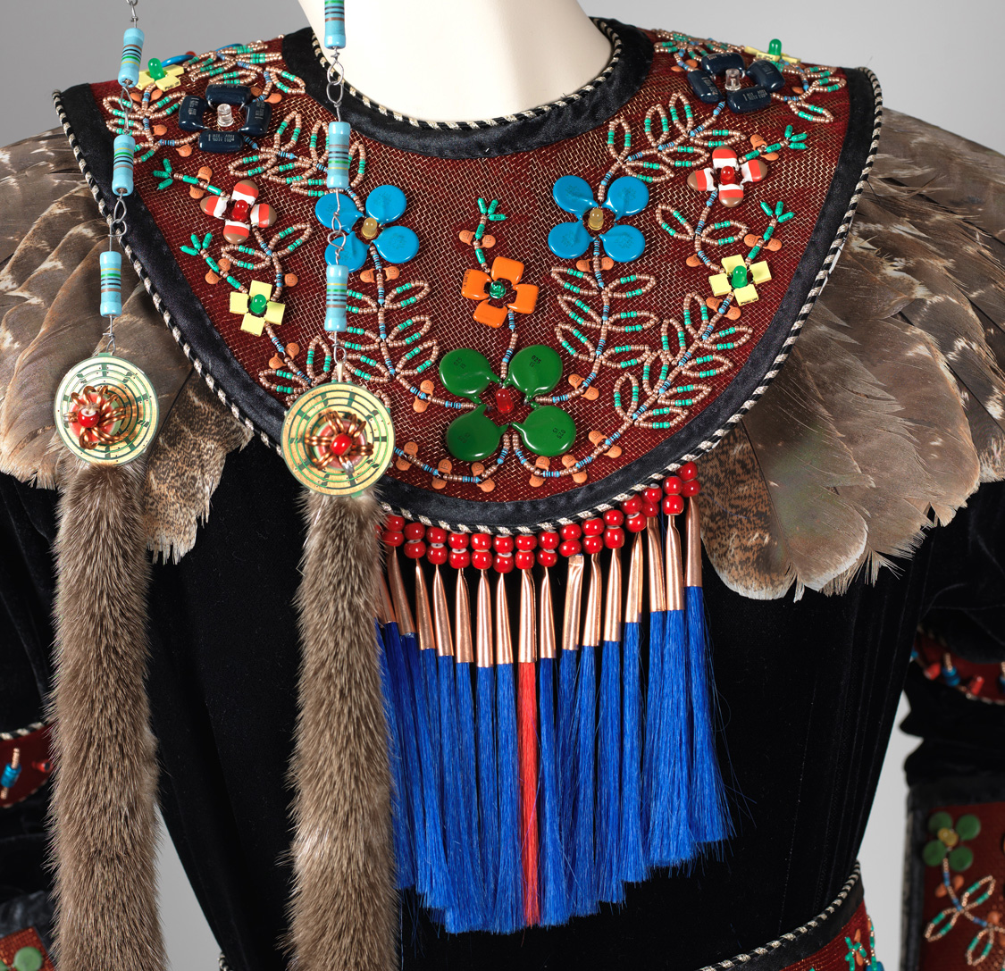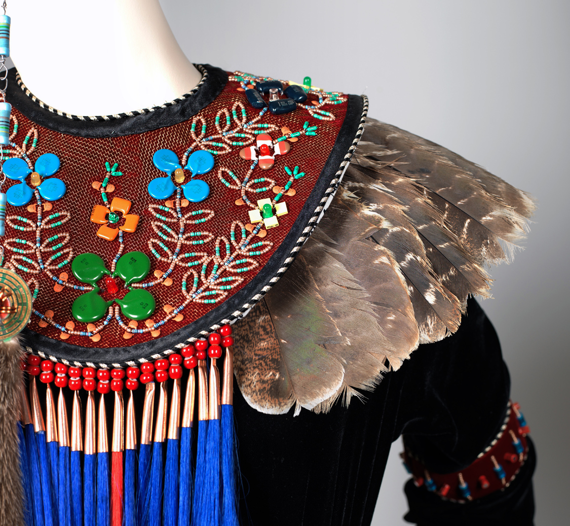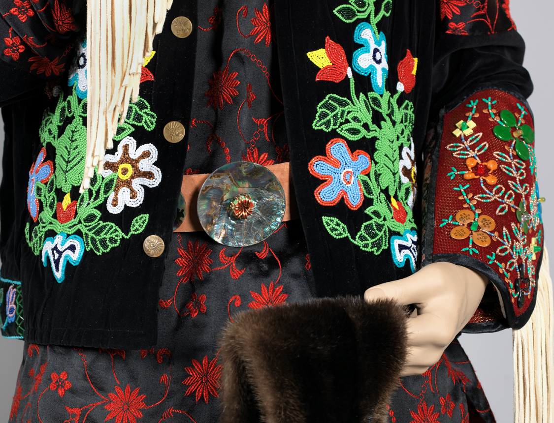 Mino bimaadiziwin (2017) Various sizes on mannequin. Mixed media (Men and women’s regalia suite). -