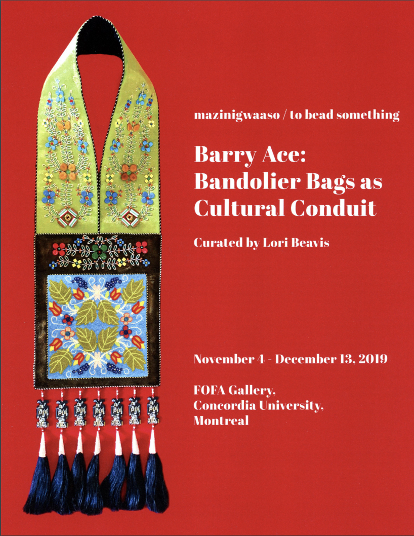 “mazinigwaaso / to bead something – Barry Ace: Bandolier Bags as Cultural Conduit” FOFA Gallery, Concordia University, Montreal, Quebec (2019)