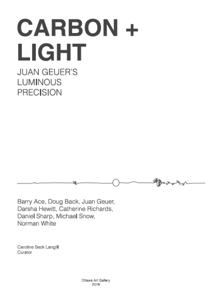 Carbon and Light: Juan Geuer’s Luminous Precision. Group exhibition. Curator – Caroline Seck Langill. Ottawa Art Gallery, Ottawa, Ontario