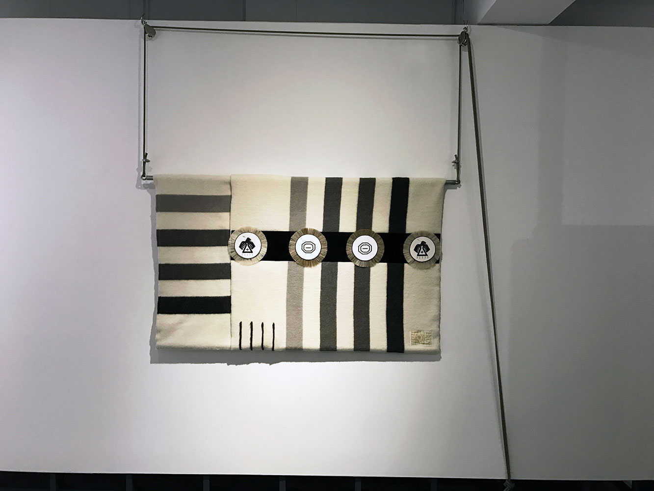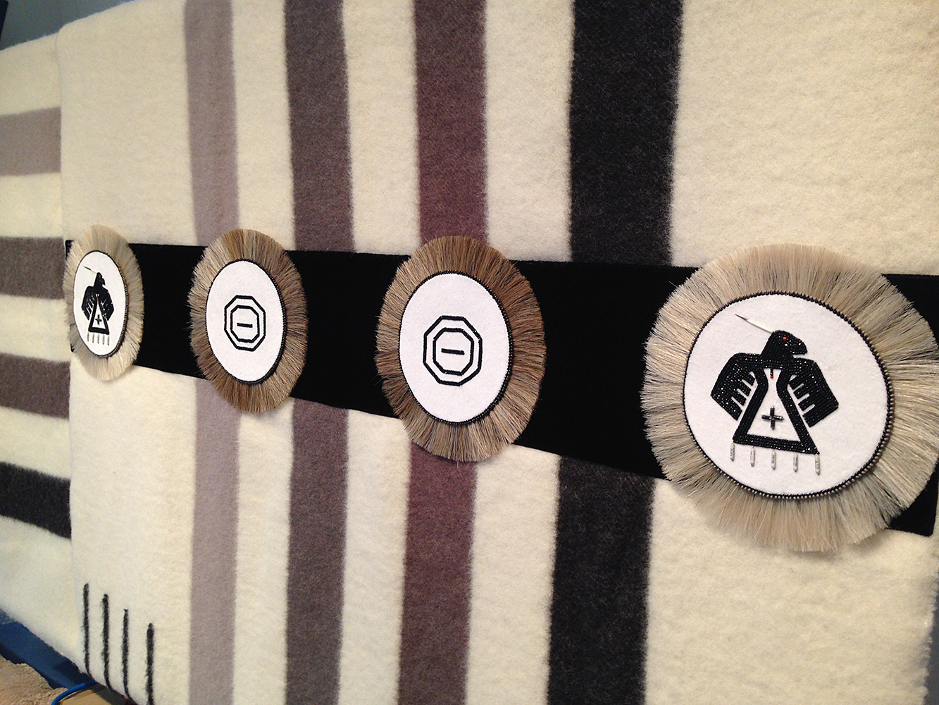 Honouring Blanket for Nahgunegahbow (2016) 163 x 91 cm, wool, velvet, beads, porcupine quills, horse hair.