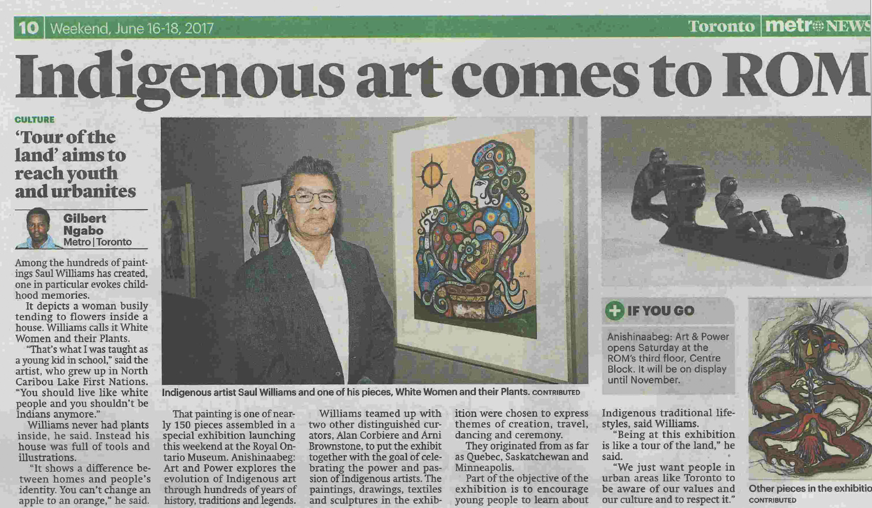 Toronto Metro News "Indigenous Art Comes To ROM" June 16-17, 2017. P10.