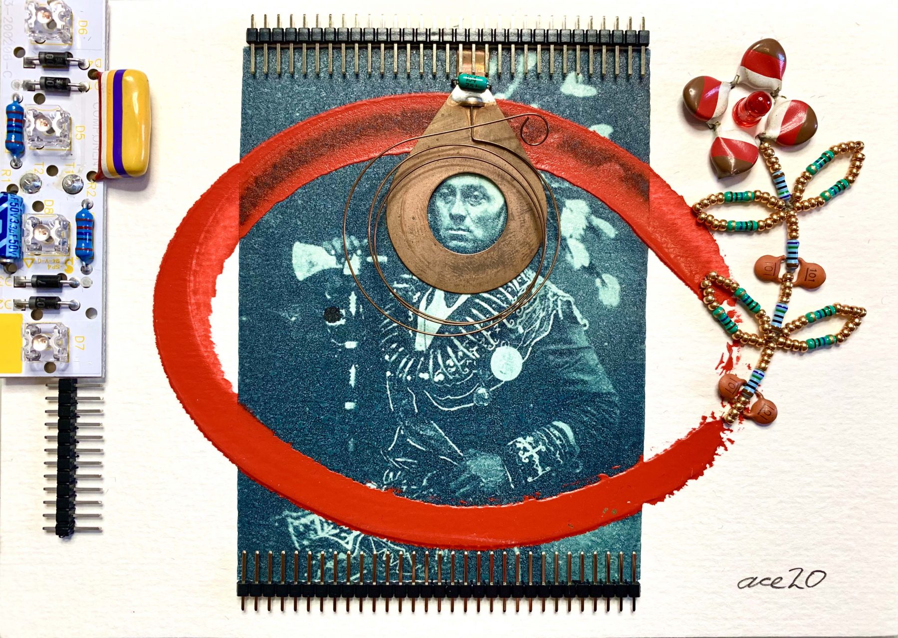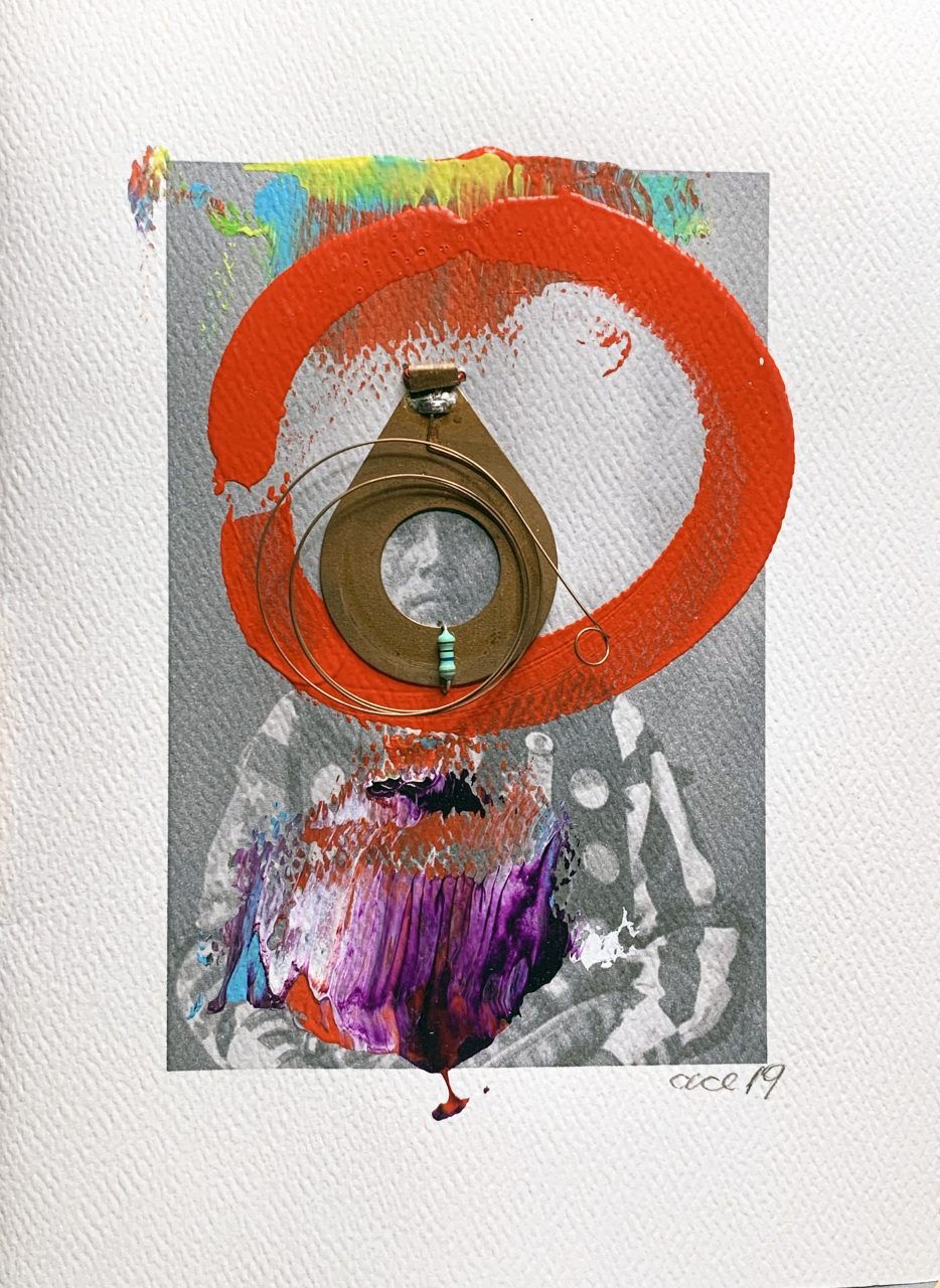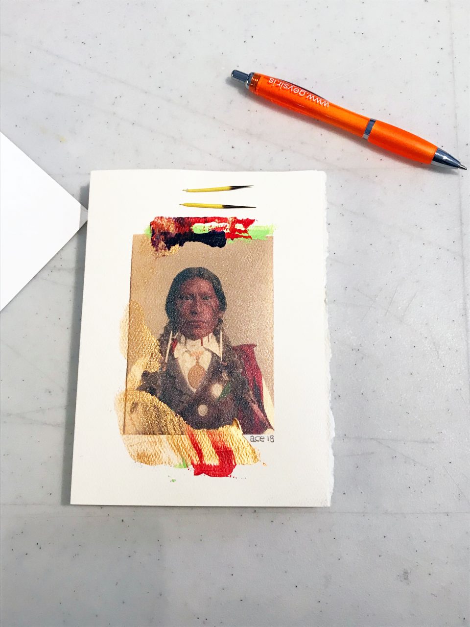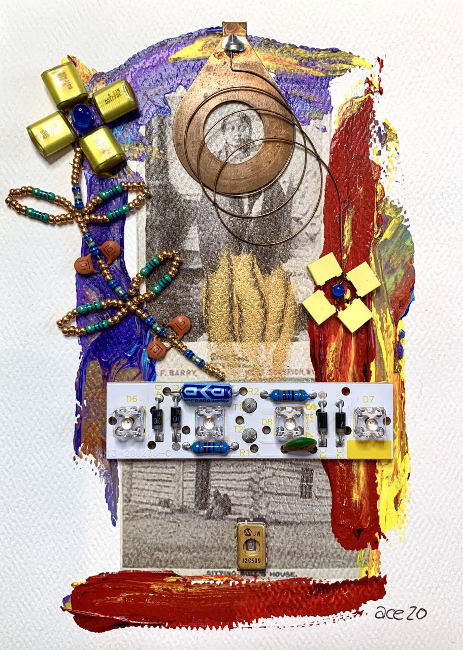 Ace began producing original handmade mixed media art cards back in 2004.  These popular photo-transfer and mixed media folded acid-free cards measure 13 x 18 cm in size with envelope. Over the years, they have been sold, traded, gifted, mailed and shared. Many have also kept them, framing them as original works of art. In the early years, Ace would bring 20 or 30 cards at a time to conferences, art openings, social gatherings and parties, and they quickly sold out. Over the years, many people became repeat customers, regularly placing special orders and subsequently writing in them and mailing them out to their friends, family and colleagues around the globe. Ace periodically documented these cards, usually in groupings, and sometimes individually, but for the most part, the majority are undocumented and remain as small private works of art. Although Ace still sporadically produces art cards, they remain collectable and rare.