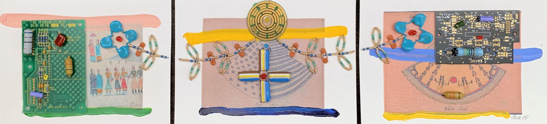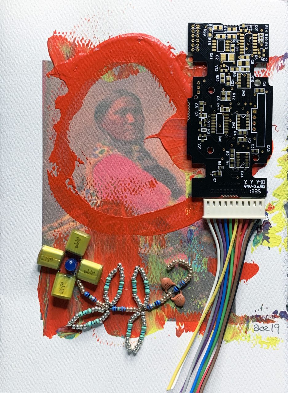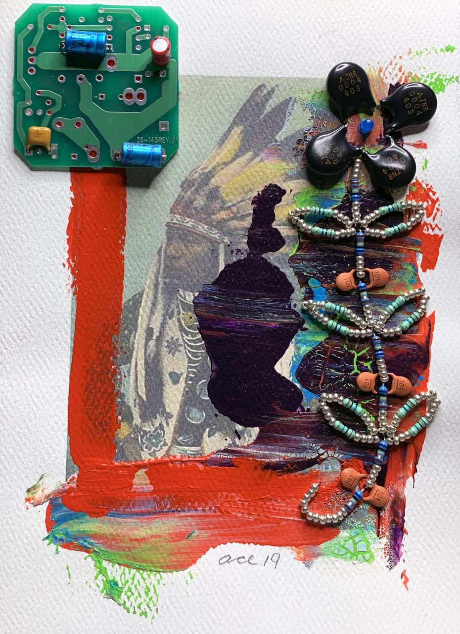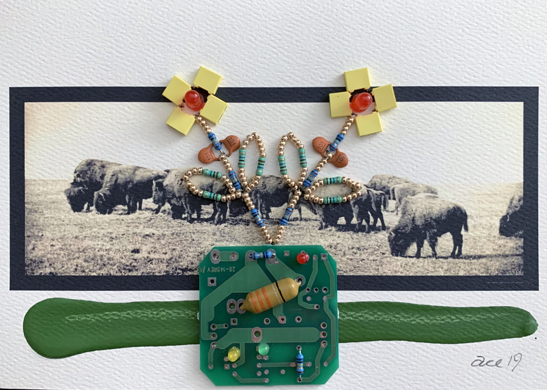 Ace began producing original handmade mixed media art cards back in 2004.  These popular photo-transfer and mixed media folded acid-free cards measure 13 x 18 cm in size with envelope. Over the years, they have been sold, traded, gifted, mailed and shared. Many have also kept them, framing them as original works of art. In the early years, Ace would bring 20 or 30 cards at a time to conferences, art openings, social gatherings and parties, and they quickly sold out. Over the years, many people became repeat customers, regularly placing special orders and subsequently writing in them and mailing them out to their friends, family and colleagues around the globe. Ace periodically documented these cards, usually in groupings, and sometimes individually, but for the most part, the majority are undocumented and remain as small private works of art. Although Ace still sporadically produces art cards, they remain collectable and rare.