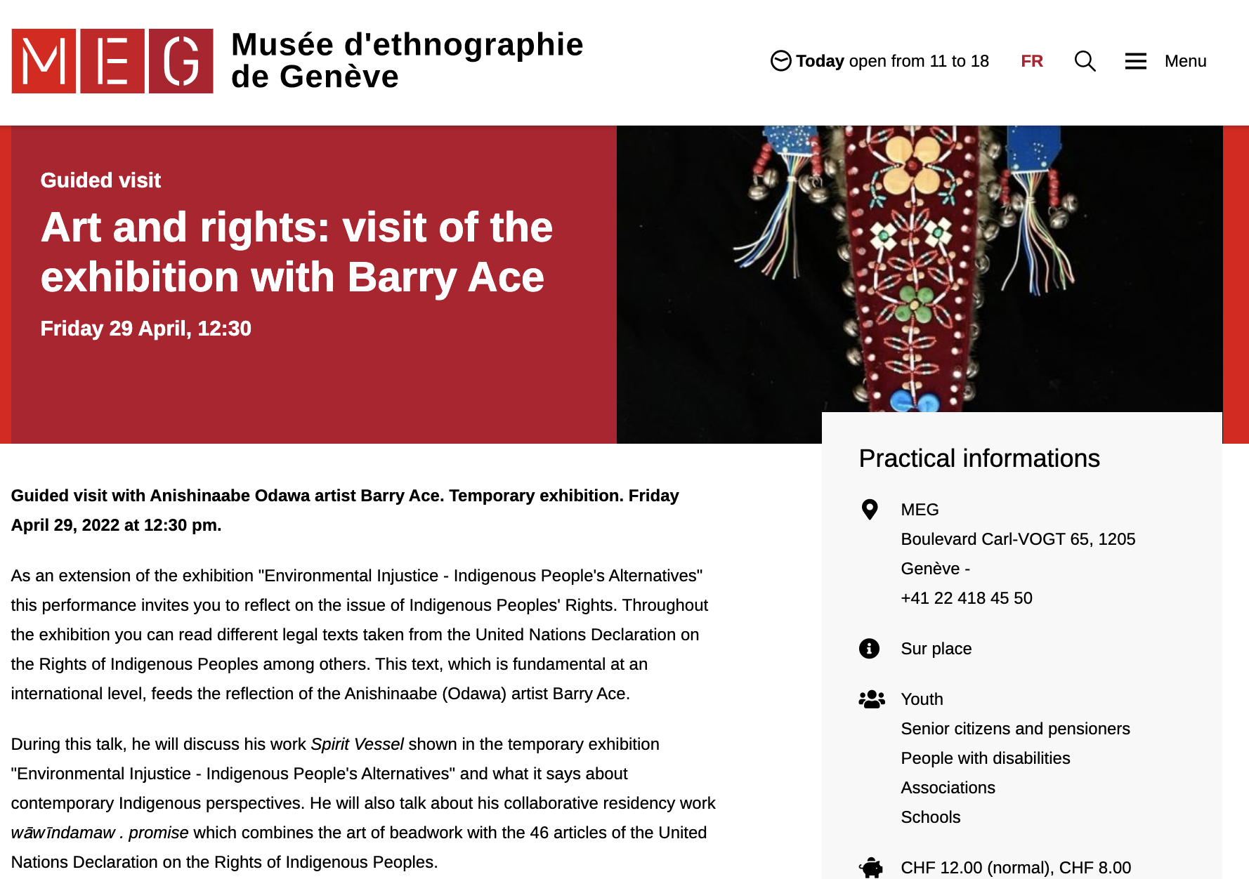 MEG (Geneva) - Artist Talk and UNDRIP Workshop