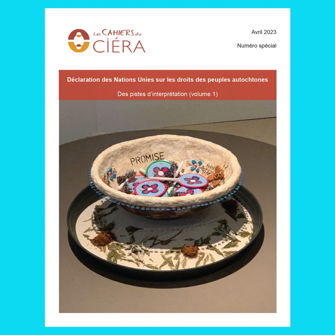 The April 2023 Les Cahiers du CIÉRA is a special edition on United Nations Declaration on the Rights of Indigenous Peoples: Possible Interpretations (Volume 1)