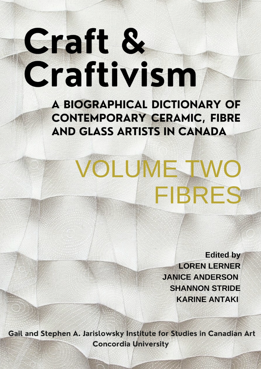 The Gail and Stephen A. Jarislowsky Institute For Studies in Canadian Art at Concordia University (Montreal) have released a comprehensive three-volume publication on contemporary work in ceramics, fibres, and glass entitled: Craft and Craftivism: A Biographical Dictionary of Contemporary Ceramic, Fibre and Glass Artists in Canada, edited by Loren Lerner, Janice Anderson, Shannon Stride and Karine Antaki.
