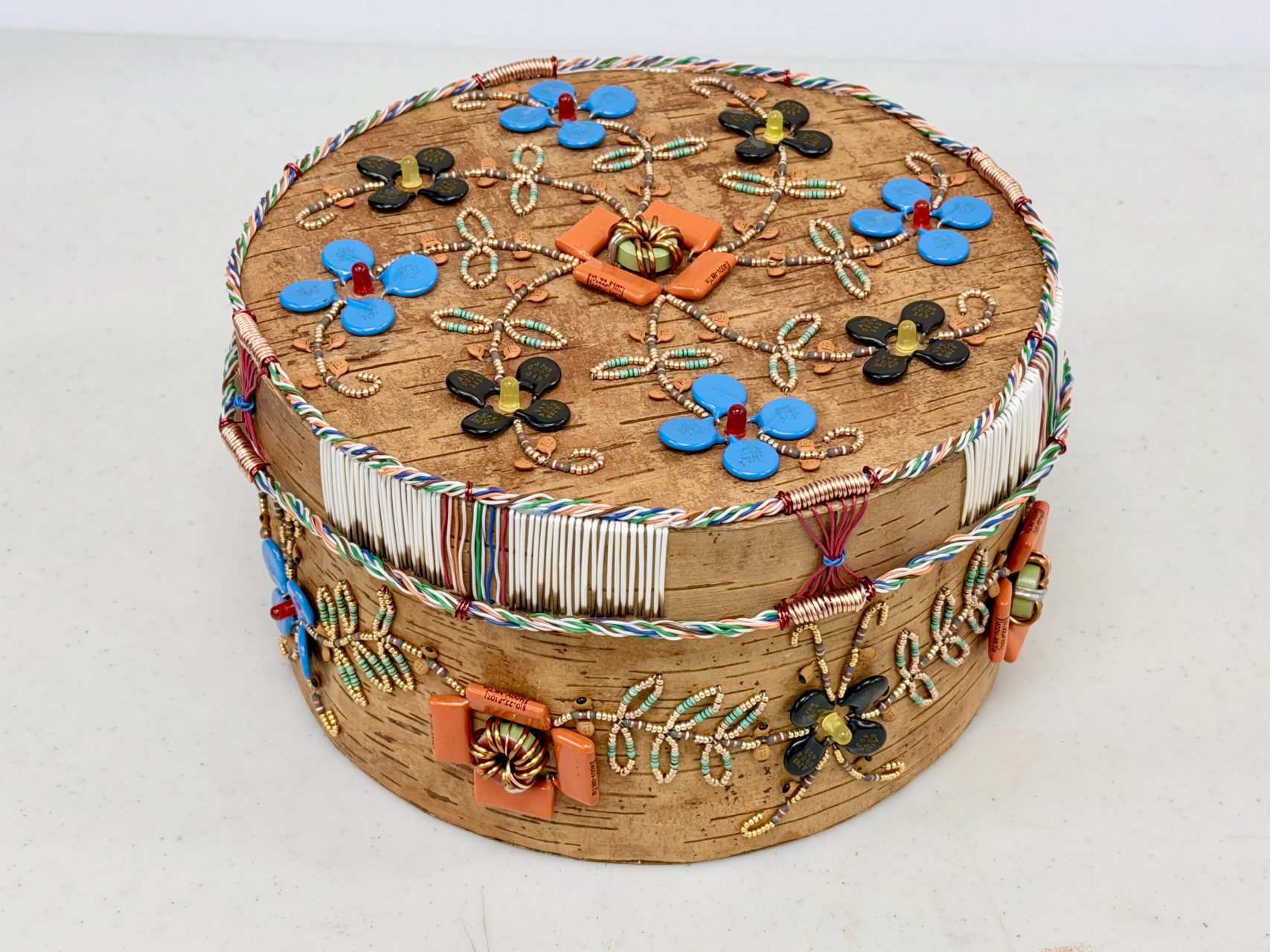 Digital wiigwaas-mkak (2017-2019) 24.13 (w) x 12.7 (h) cm (circumference 74.81 cm), mixed media. Collection of the Artist.
